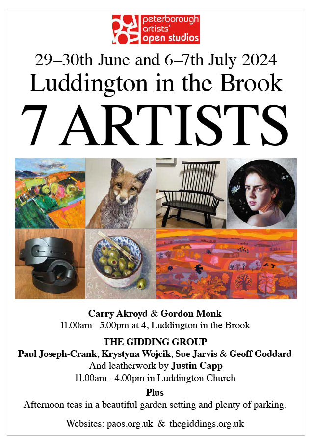 As part of the Peterborough Artists’ Open Studios event 4 artists from Great Gidding will be joining artists in Luddington to exhibit their latest works.