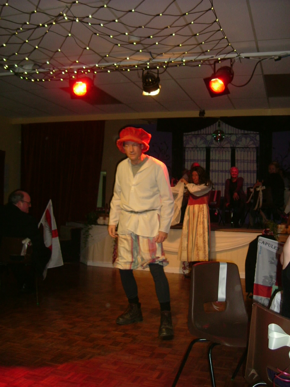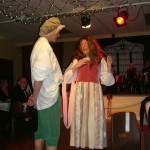 There was a welcome bottle of fizz on every table, plus a two-course dinner… And the entertainment… well, what can we say? It started with a Fawlty Towers style ‘Hole in My Bucket’ followed by a rendition of ‘We’re a Couple of Swells’ that probably won’t trouble Astaire and Garland’s reputations any time soon but was still greatly enjoyed. Finally, we were treated to a performance of Romeo and Juliet – the five-minute version – by the cast of the Rural Shakespeare Company. It was a tour de force with a memorable duel (feather dusters the weapon of choice!) and most of the cast ending up flat out on the stage. Then it was the audience’s turn, with a rollicking singalong to end the evening’s entertainment.