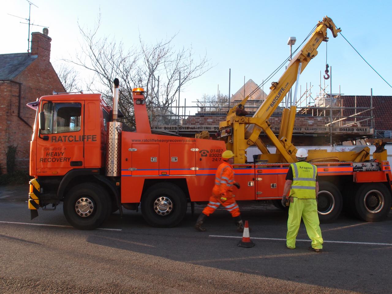 Great Gidding Main Street has its moments. On this particular occasion lifting assistance was required at Top Farm.