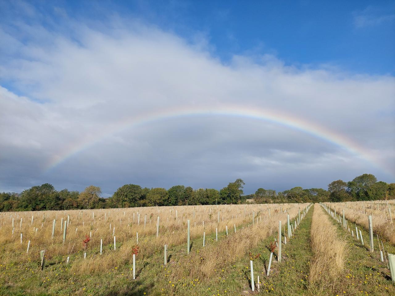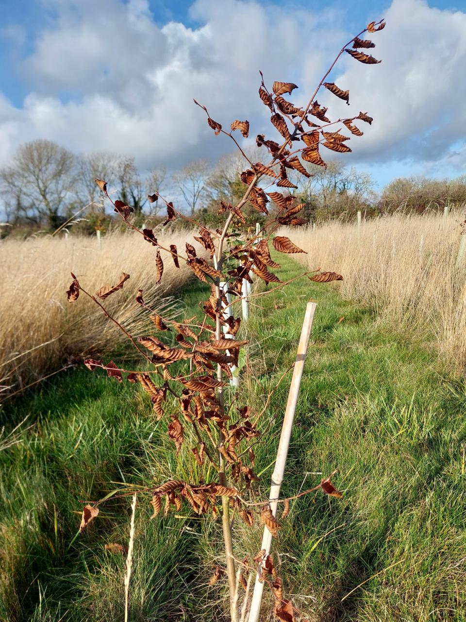How has this affected the KW? Not a lot would be a simple and honest answer. If we had planted this year instead of 2024 it might well be a very different story. One of woe and wasted effort perhaps. Coming out of a high rainfall year the tree roots got themselves growing and locked into the soil particles. The biggest problem was the intense sunshine making the new leaves transpire rapidly especially in the wrap around tubes. The thinking here was that leaf diseases would become an issue so the answer was to lift the tubes on the most affected trees. I did have to spend a week mulching the trees to try and mitigate moisture loss. Overall the outcome is mostly positive with some “tree-mendous” growth by most of the planted species.