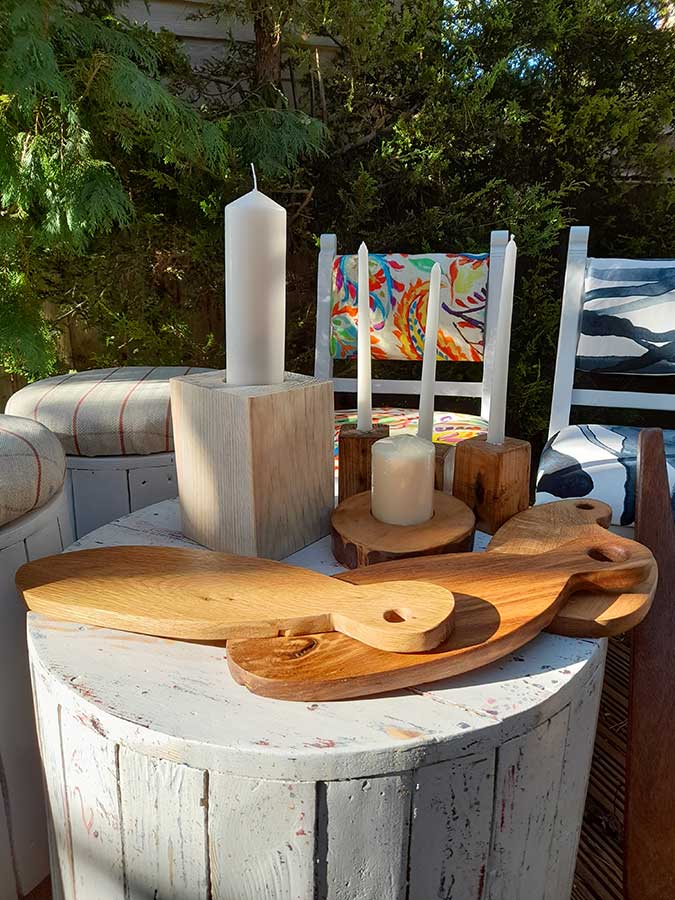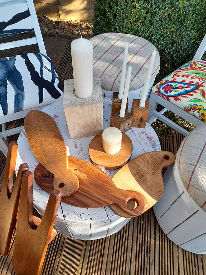 Since retiring a year ago, Andrew has been busy in his workshop, producing a selection of upcycled furniture and gifts, such as candle holders, trendy foodboards, chairs and tables, all made from recycled oak, pallets or offcuts. Commissions welcome.