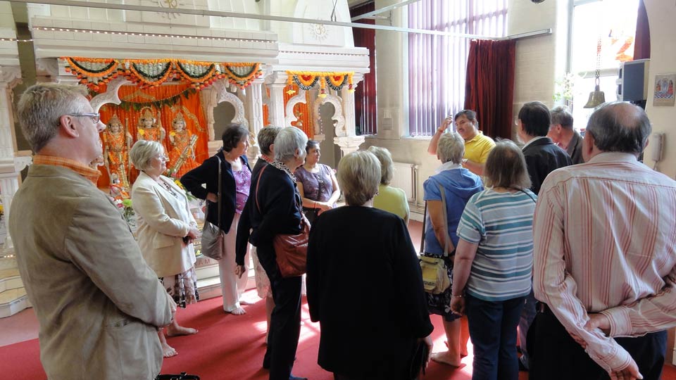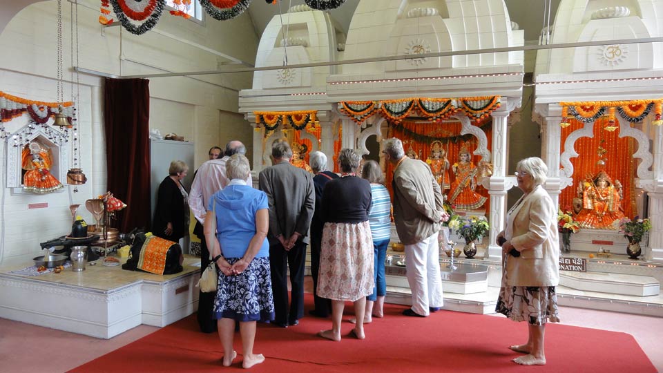 A good number of Gidding residents spent a delightful morning attending the joyous ceremony of Aarti at the Bharat Hindu Samaj in Peterborough. Following the ceremony – in which we were all invited to take part – our very knowledgeable guide for the morning, Gita, explained the Hindu philosophy and gave us a brief introduction to the role of Brahma and the nine, so far, reincarnations of Vishnu.