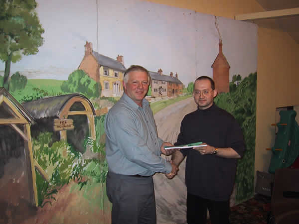 Michael Trolove presents a copy of "The Millennium History of Great Gidding" to Alan Akeroyd the Archivist at County Record Office, Huntingdon .