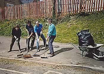 Sue, Chris, Paul and Gill practice their formation cleaning.