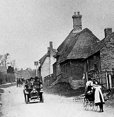 This fine photo, taken in 1906, shows, in the foreground, one of four alms-house cottages built around a yard. They were probably built during the 1840s, but no longer exist.