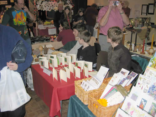 Patrick Jarvis selling wood turning and Mary Reid selling handmade Christmas cards