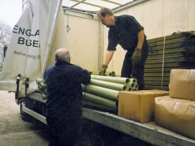 Unloading the trees and stakes.