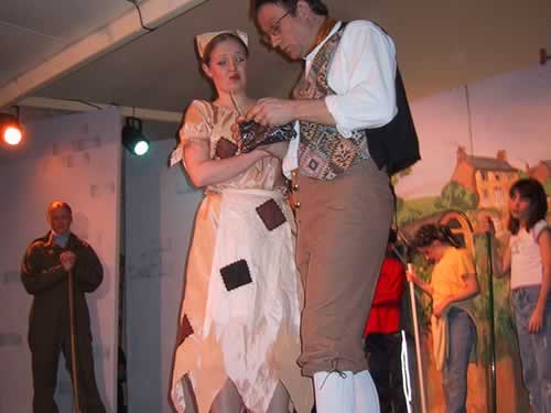 Cinders (Michelle McGregor) and Buttons discuss finances