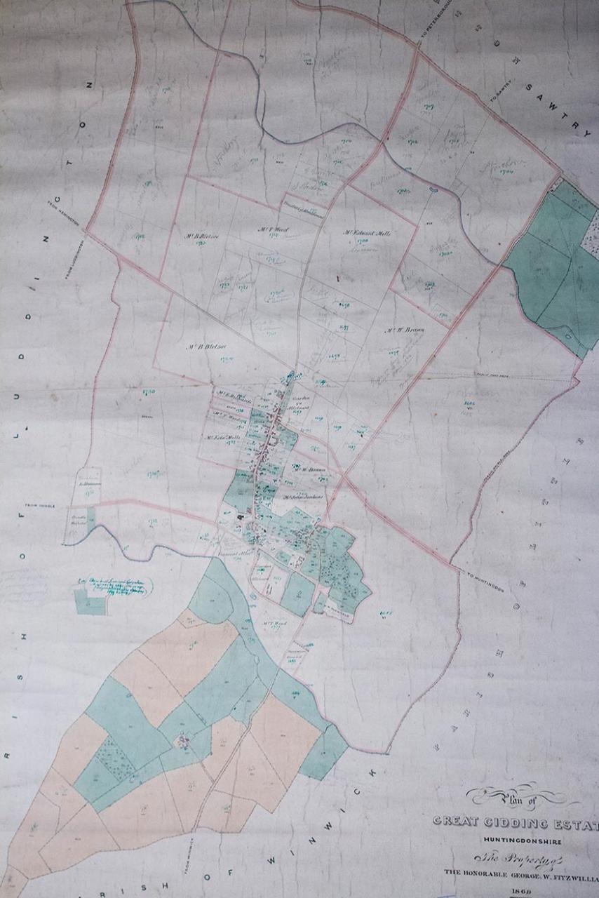 Mr Dalgliesh also brought some very interesting historical documents, maps and charts from the Milton Hall archive, including the Deed dated 1827 whereby Great Gidding was part of a sale of property by the Watsons of Rockingham Castle to the Fitzwilliam Estate. Also included were maps and associated lists from 1869 and 1889 showing the occupiers and owners of the village property which warrant further study.