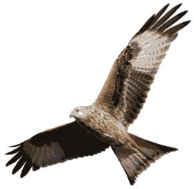With a whopping wingspan of nearly two metres and a small body weight of 2kg the red kite can stay in the air for many hours with hardly a beat of its wings. It is usually silent while hunting but can be noisy when fighting for scraps of food with carrion crows and other kites.