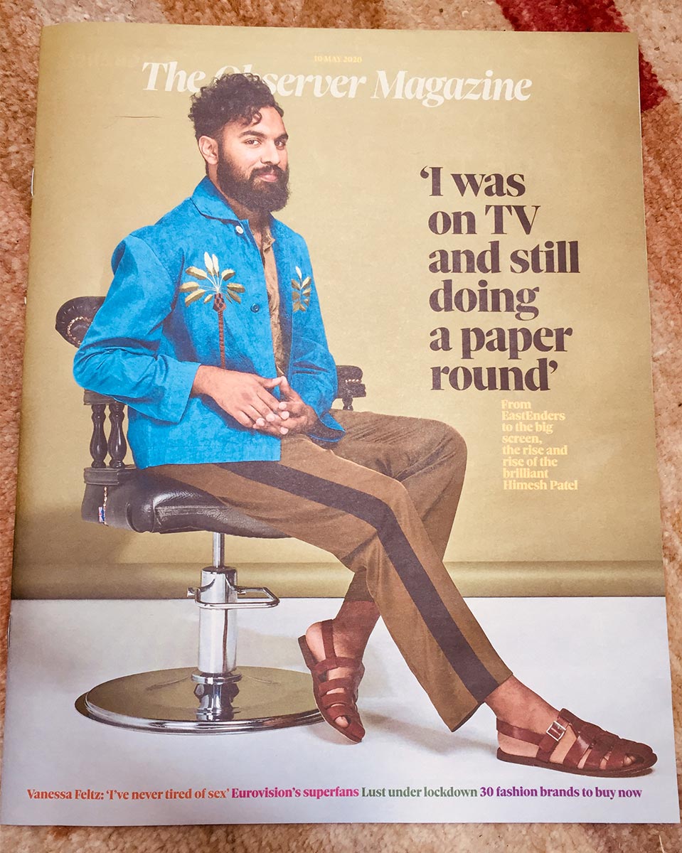 Himesh (Patel) featured in this Sunday’s Observer Magazine – photos below and the full article from the Observer website: https://www.theguardian.com/global/2020/may/10/himesh-patel-it-felt-odd-making-a-show-about-a-pandemic
