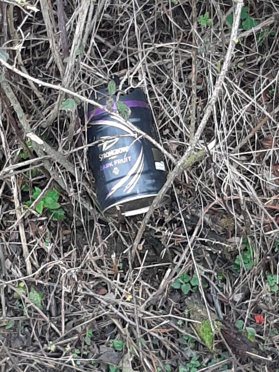 Big brand shout out for Strongbow Dark Fruit cider, obviously the consumer was befuddled after downing the contents as to how to recycle the empty can.