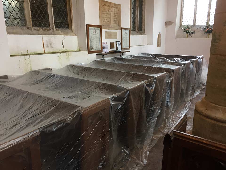 Intensive restoration has been carried out on both the north and south aisles following the roof lead theft.