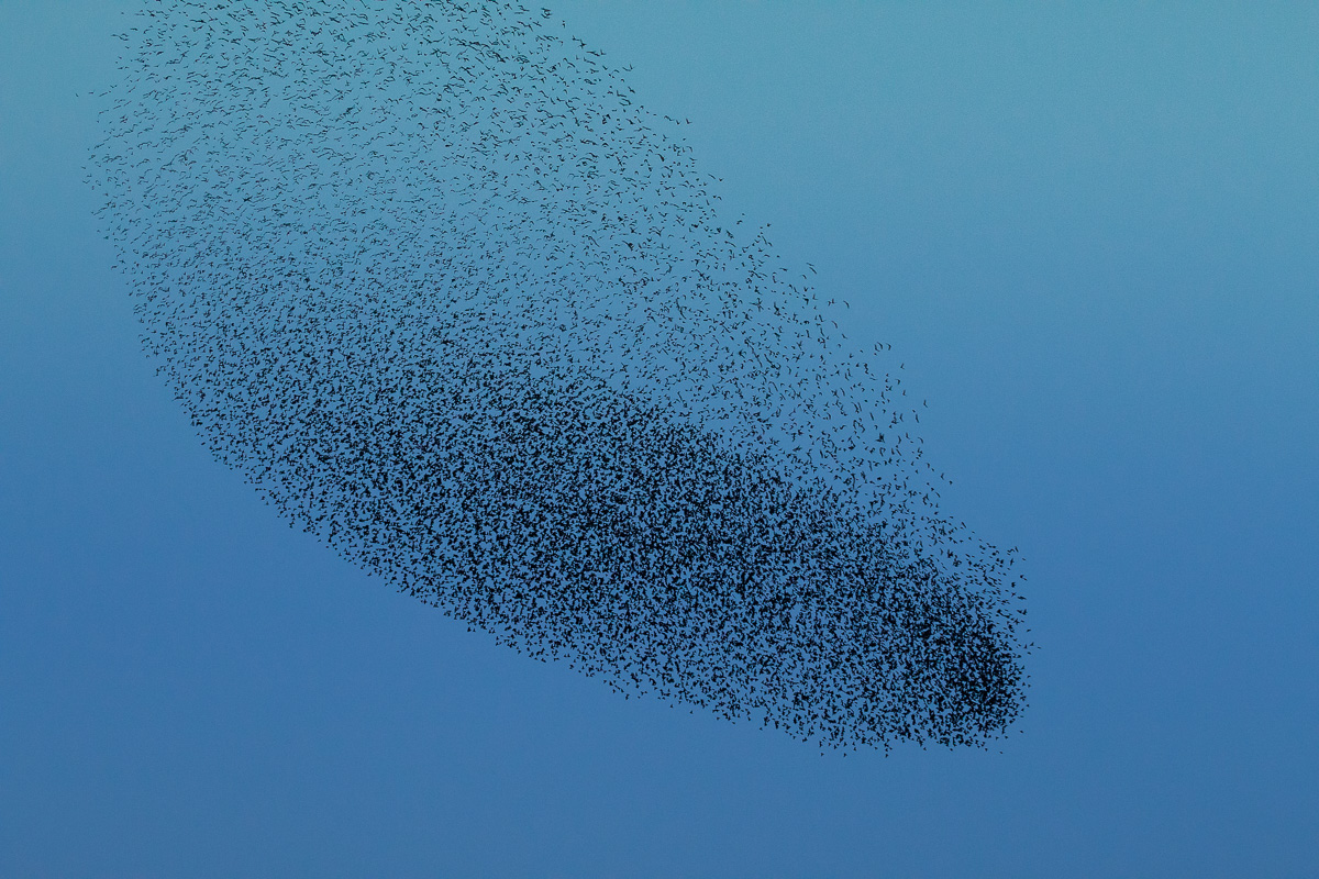 Gradually, as the aerial display continues, the birds come slightly lower and closer together and form the impressive swirling shapes that make them the stars of nature programmes.