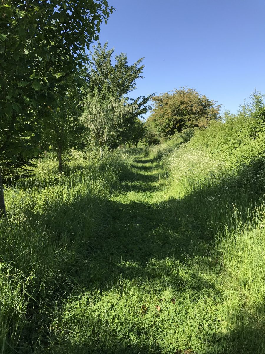 Michael has also managed to keep the grass pathways tidy, aided by the acquisition of an old ride on mower which allows for selective height cutting in different areas. The hot weather has slowed down the growth of the grass and an abundance of rabbits try to help him as much as possible. Unfortunately they seem to be getting their energy from vegetables being grown on the adjacent allotments but at least they’re sharing them with the Muntjacs.